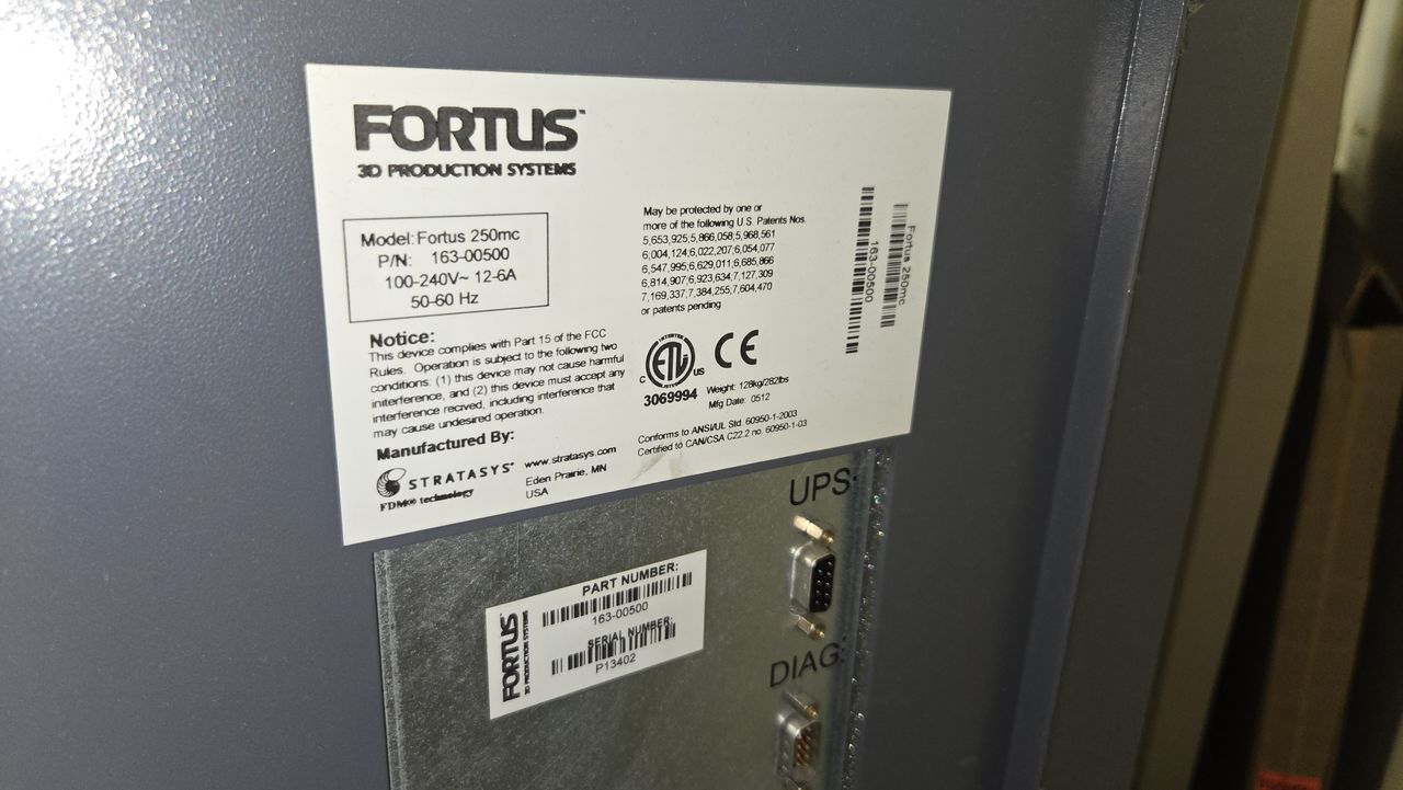 - StrataSys Fortus 250mc 3D Rapid Portable Production System, with Vibratory CleanStation